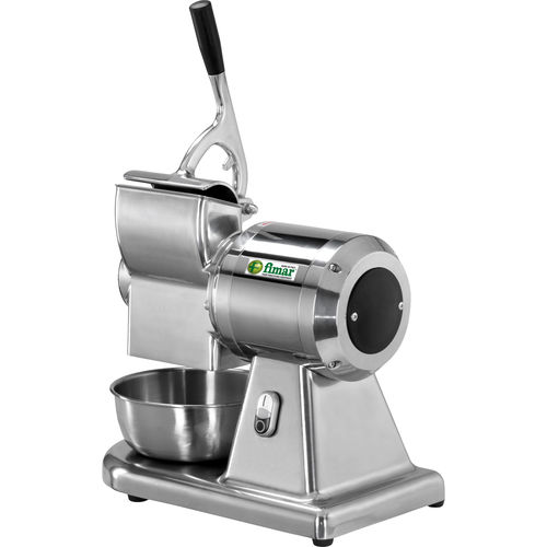 Корпус и мясоприемник из полированного алюминия, размеры мясоприемник 140×75 mm ролик из нержавеющей стали, нижняя защитная решетка, микровыключатель на прижимном рычаге терки, исполнение CE с тормозом двигателя.