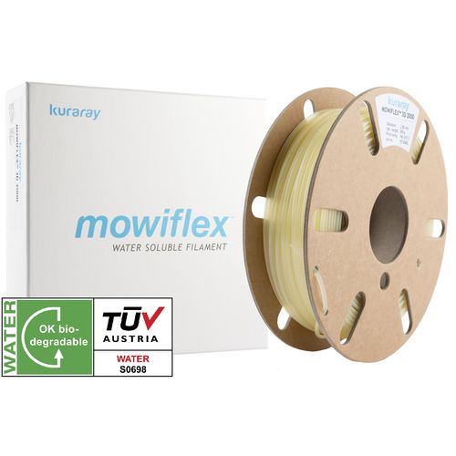 MOWIFLEX™ 3D 2000 – это биоразлагаемый водорастворимый термопластичный материал на основе поливинилового спирта (ПВА), обладающий отличной адгезией к различным пластикам, таким как PLA, PA, PVB, TPU, PETG, TPC.