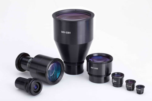 Серия телецентрических систем разработана с использованием пары базовых линз для достижения телецентричности, необходимой в плоскости объекта и изображения. Комбинированная телецентрическая система объективов с диафрагмой, расположенной в общем фокусе передней и задней линз, приводит к тому, что главный луч параллелен оптической оси как в пространстве объекта, так и в пространстве изображения. Входной и выходной зрачки находятся на бесконечности. Таким образом, постоянная перспектива или угол обзора и постоянное увеличение могут быть достигнуты в случаях, когда поверхность объекта и изображения наклонены относительно оптической оси или линза расфокусирована на поверхности объекта или изображения. Еще одной особенностью является большая глубина фокусировки, до нескольких миллиметров, что чрезвычайно полезно при проведении инспекций. Для соединения с CCD-камерами предлагаются адаптеры с креплением C/T (GCO-230101~231206).