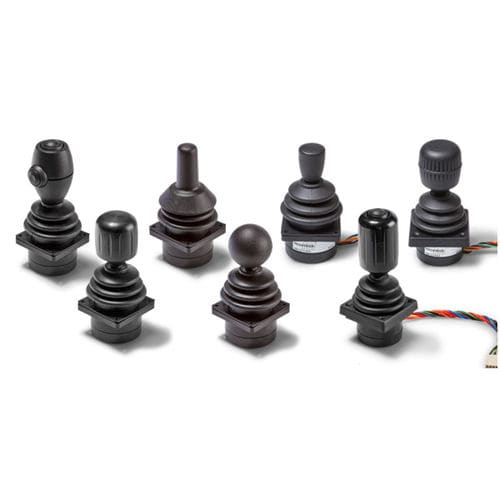 Джойстики серии 844 оснащены неизнашиваемыми датчиками на эффекте Холла, могут иметь до 3 осей и отличаются надежной механической конструкцией с шарниром с шаровой головкой. Они выдерживают большие усилия толкания, тяги, поступательного и вращательного движения, вплоть до нагрузки 400 Н (вертикально). Срок службы составляет до 10 миллионов операций. Благодаря защите до IP65, разнообразию форм рукояток, ограничителей и выходных опций можно подобрать оптимальный продукт для конкретного применения.