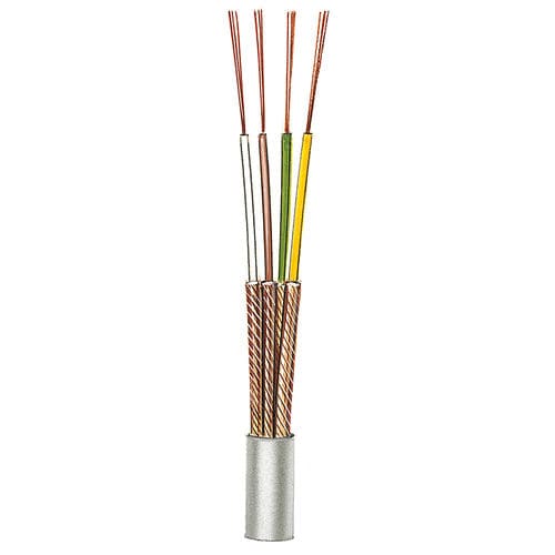 Структура кабеля: 4 индивидуально экранированных жилы скручены в кабель и покрыты оболочкой из ПВХ серого цвета RAL 7001.