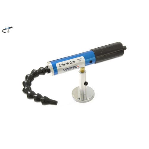 Регулируемый пистолет холодного воздуха модели 610 идеально подходит для использования в обрабатывающей промышленности, а также для охлаждения деталей и промышленных процессов. Регулируемая функция модели 610 позволяет устанавливать скорость потока холодного воздуха (BTUH) на оптимальном уровне для вашего применения. Максимальное падение температуры регулируемого пистолета холодного воздуха на 55,6 ºC ниже температуры воздуха на входе и максимальная охлаждающая способность составляет 378 ккал/час. Потребность модели 610 в подаче сжатого воздуха составляет 425 SLPM при давлении 6,9 бар. Модель 610 поставляется в комплекте с гибким соплом для подачи холодного воздуха и магнитным основанием для быстрой и простой установки и использования.