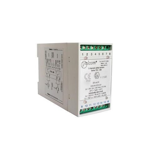 Гальванически изолированные барьеры безопасности TSU400 действительная алтернатива к пассивным барьерам потому что им не нужна высокая земля герметичности I.S., изоляцией между безопасным районом и опасной областью гарантированными трансформатором. Барьеры серии TSU400 имеют внутреннеприсущую стабилизацию напряжения поставкы и конструированы для соединения к ВКЛЮЧЕНЫЙ-ВЫКЛЮЧЕНЫМ датчикам имея mA быть ым так, что они позволят для того чтобы взаимодействовать аппаратуры переключения 5/13 mA двухпроводные также давая выход реле. Они специально соответствующи для применений кораблей и для опасных установок зон будучи аттестованными [ia EEx] IIC. Большие преимущества предложены при помощи барьеров серии TSU400 взаимодействуемых с серией переключателей ASL400 уровня Valcom® ультразвуковой.