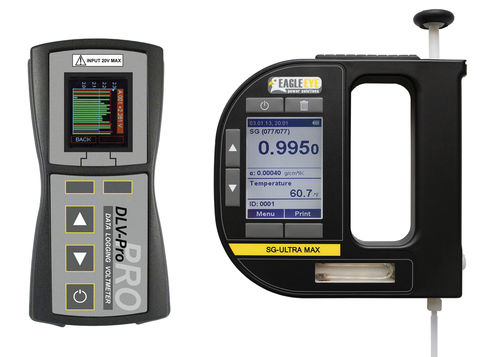 комплект для тестирования батареи DLV-Max включает в себя вольтметр регистрации данных DLV-Pro с цифровым гидрометром SG-Ultra Max для комплексного решения для тестирования напряжения батареи и удельного веса. Вольтметр DLV-Pro измеряет и регистрирует напряжение элементов питания менее чем за 1 секунду, что позволяет быстро проверить напряжение элементов питания. Напряжение записывается в двух форматах: 8 строк по 256 или 20 строк по 48 показаний. Показания удельной массы и температуры, полученные с помощью SG-Ultra Max, загружаются непосредственно в DLV-Pro в формате 8 строк по 256. Показания напряжения и удельного веса могут быть объединены в один отчет.