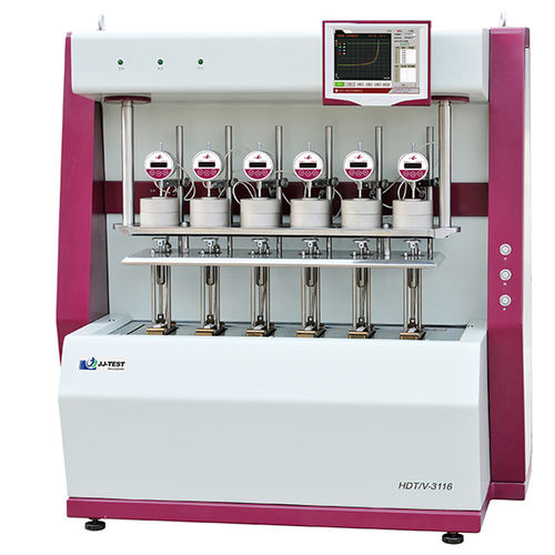 Тестер используется для определения температуры теплового прогиба или точки размягчения вика. Все образцы заряжаются с постоянной нагрузкой и погружаются в ванну, где температура повышается со стандартной скоростью. Достигнутый коэффициент термостойкости пластмассы является широко используемым параметром для характеристики продукта, контроля качества, а также для оценки их соответствия предварительно просматриваемым областям применения. Дополнительная программная система позволяет создавать графики, показывающие деформацию каждого образца и увеличение температуры по сравнению со временем.