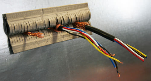 Защищаемая система входа кабеля, котор нужно установить, смолола и защищает несколько кабели или пачек кабелей одновременно. Высоки проводное гибкое набивка EMC между которым кабели войдены в представление gaurantee приложения превосходное защищая между 1 MHz и 10 Ghz.