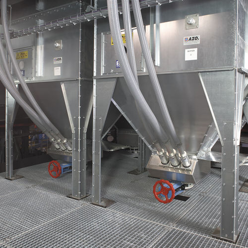 Подсилосная приемная воронка монтируется с помощью фланцев на выходе силоса или емкости и предназначена для всасывания сыпучих материалов. За счет образования пониженного давления в подающей линии, которая соединена со всасывающим шлангом, продукт втягивается из приемной воронки в подающую линию. К одному силосу можно подсоединить до 8 отводов. Дополнительное соединение снизу или сбоку создает возможность аварийной выгрузки или удаления остатков.