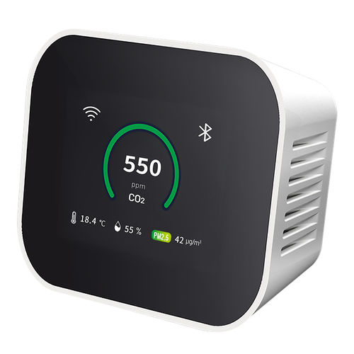 Манітор якасці паветра AM7000 – гэта інтэлектуальны настольны манітор якасці паветра ў памяшканні, заснаваны на OEM, з модным і кампактным дызайнам. Ён можа інтэграваць высакаякасны модуль датчыка якасці паветра, які можа кантраляваць якасць паветра ў памяшканні і выдаваць у рэжыме рэальнага часу дадзеныя PM1.0, PM2.5, PM10, CO2, HCHO, VOC, RH&T і г.д.
