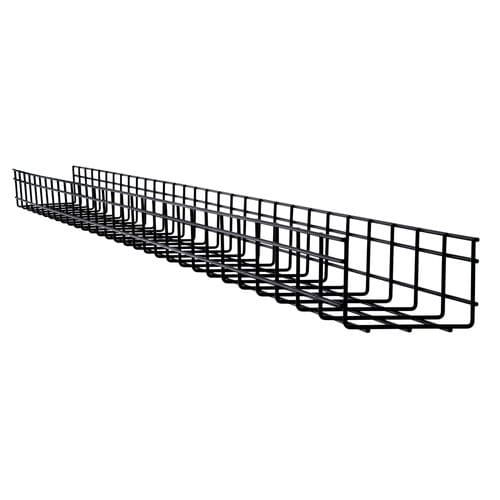 Проволока с черным порошковым покрытием гладкая и закругленная, что не только защищает монтажников кабелей и IT-персонал от порезов рук, но и предотвращает истирание кабелей по острым краям. Кроме того, закругленная проволока не допускает накопления на ней мусора в пыльных сетевых шкафах и промышленных помещениях. Большие сетчатые отверстия позволяют при необходимости прокладывать кабели через пространства.