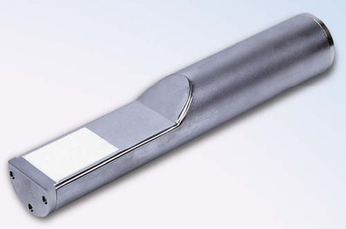 Уникальная особенность заключается в том, что лицевая пластина датчика располагается под углом к потоку материала.