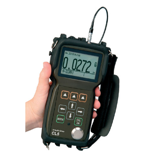 Krautkrämer CL5 идеально подходит для высокоточного измерения толщины металлических и пластиковых деталей, сложная геометрия которых часто создает трудности при контроле стандартными толщиномерами. Он может отображать ультразвуковой эхо-сигнал в режиме реального времени на развертке типа A, благодаря чему в любой момент можно контролировать положение преобразователя и точность контроля деталей сложной формы. Удобство, прочность и портативность CL5 обеспечивают возможность контроля одной рукой в полевых и лабораторных условиях и наглядность экранных подсказок без использования специальных клавиш.