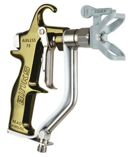 Эргономическо в конструкции, но грубо в представлении, пушке брызга A75 Binks безвоздушной ручной отличает оконтуренной ручкой для того чтобы обеспечить легкий, и легкий регулировать. Тело упаковано в выкованном алюминии для того чтобы обеспечить длительное проведение даже в весьма деятельностях, вокруг 7500 psi. Более далее для того чтобы форсировать долговечность, безвоздушное A75 отличает пробкой толщиной нержавеющей стали жидкой для того чтобы отрегулировать абразивные материалы. уникально рационализаторство иглы отличает регулируемым пакетом иглы для того чтобы обеспечить долговечность пока скачущ из жидкого путя.