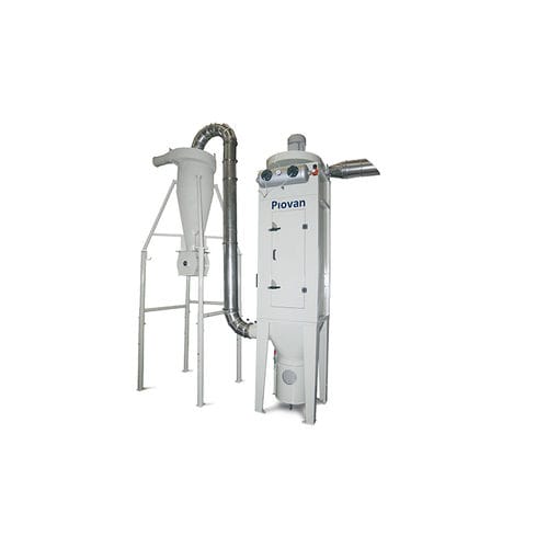 Система KA сконструирована для транспортировки и удаления пыли из материала, высвобождая отфильтрованный воздух в атмосферу и снижая уровень шумового загрязнения. Изготавливаются шесть моделей различной производительности. Система транспортировки оснащена сменным фильтром с лёгким к нему доступом. Система модульная, жесткой конструкции, компактная, адаптируемая к инженерным требованиям конкретного производства. Принадлежности: антистатические штоки, металлосепараторы, КИП дробления, защитные устройства в соответствии со стандартами EC. Работа в автоматическом или ручном режимах регулируется с пульта шредера или дробилки.