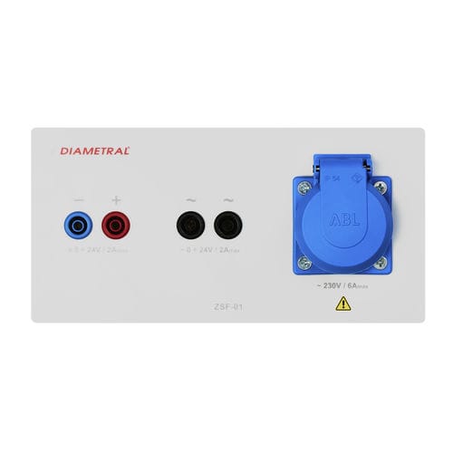 Панель с розетками низкого напряжения 0-30 В постоянного тока, 0-24 В переменного тока и розеткой питания 230 В переменного тока, предназначена для встраивания в студенческую парту.
