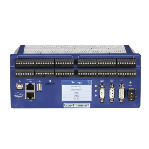 Expert Transient оснащен 8 или 16 синхронными аналоговыми входами и 4 дискретными входами. Система может быть расширена до более чем 100 аналоговых сигналов через интерфейс LAN с высокоскоростными протоколами синхронизации. Также возможно расширение для дополнительных синхронных дискретных входов.