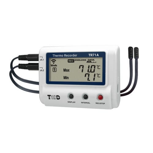 TR71A представляет собой регистратор температуры с двумя доступными разъемами для подключения датчиков и может измерять температуру от -60 до 155℃. Широкий выбор дополнительных датчиков обеспечивает повышенную гибкость измерений.