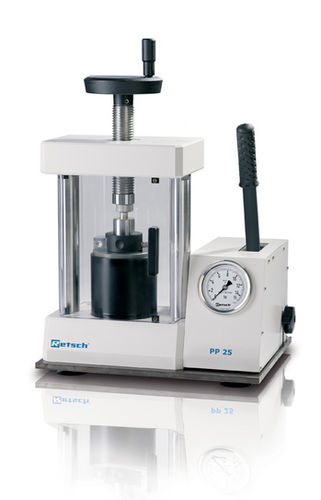PP 25 компактная пресса лепешки benchtop с силой давления 25 t. Он производит стабилизированные, высококачественные лепешки с ровной поверхностью которые использованы для анализа XRF. Плашки на PP 25 доступны в различных диаметрах и могут быть эвакуированы совершенно.