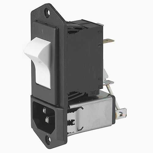 Данное устройство может монтироваться с лицевой стороны с помощью винтового крепления на панель. Он прост в использовании с быстроразъемными клеммами 6,3×0,8 мм. Устройство имеет три функции: 2-полюсный автоматический выключатель типа TA45, устройство класса защиты входа I и сетевой фильтр, доступный как в стандартном, так и в медицинском исполнении.